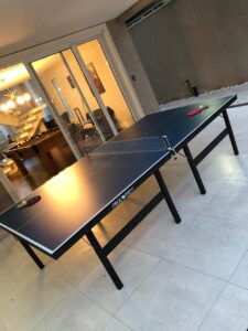 Ping Pong: mesa em tamanho oficial, acompanhando 2 raquetes e 3 bolinhas, perfeita para jogos recreativos ou treinos.
